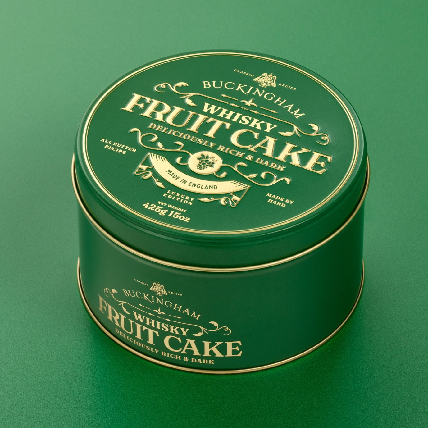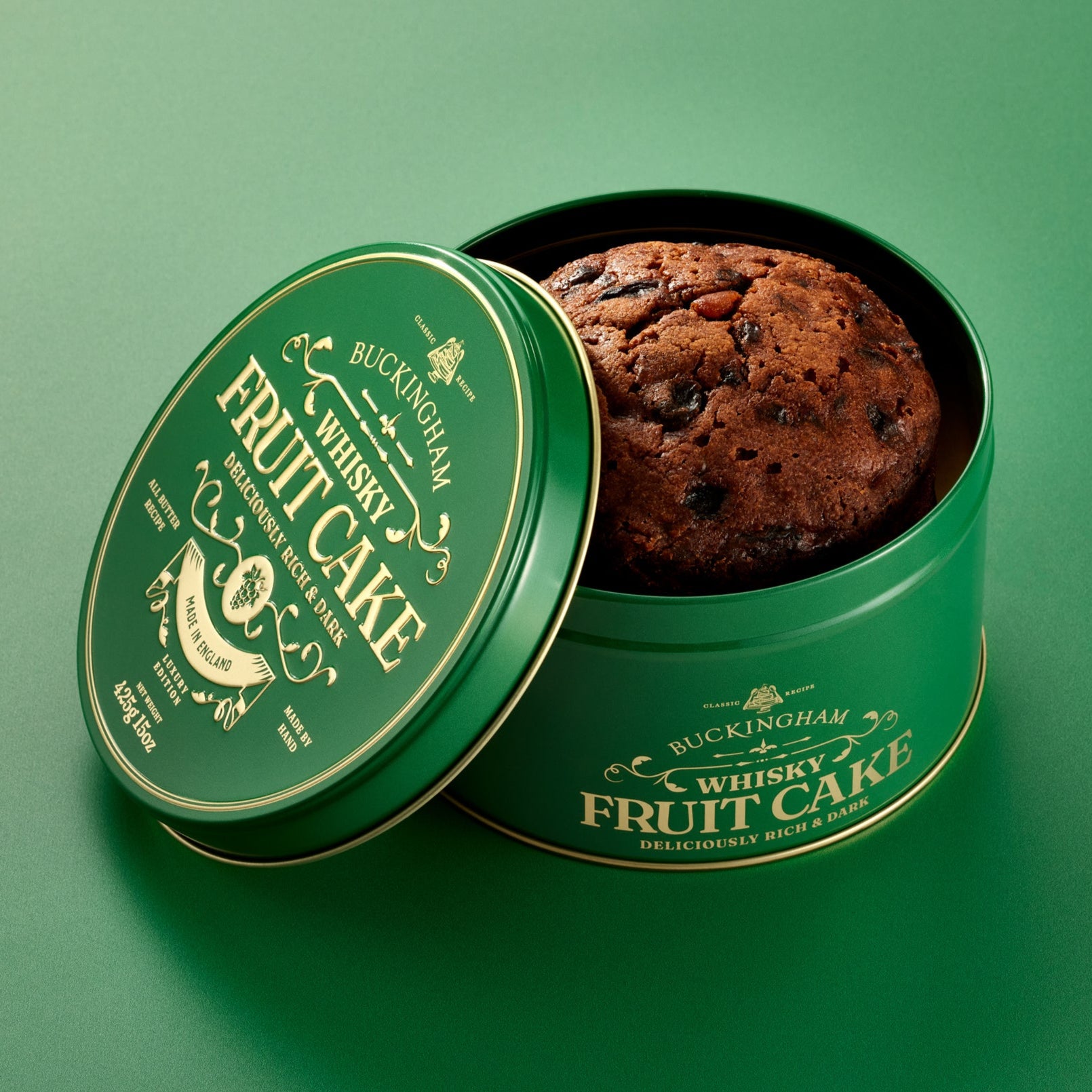 The rich and delicious Scotch whisky fruit cake in a tin, made with the classic Buckingham® recipe. With over 45% real juicy fruit and British butter, the whisky fruit cake in a tin is the perfect gift for someone who enjoys a delicious treat with their favourite tipple. This luxury vintage-inspired tin will be a great addition at Christmas time.
